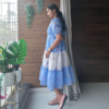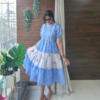 A charming blue gingham frock featuring delicate floral prints and a beautifully layered skirt. Designed with soft breathable fabric and puff sleeves, this dress offers both comfort and effortless elegance—perfect for casual outings, brunch dates, or summer gatherings.
