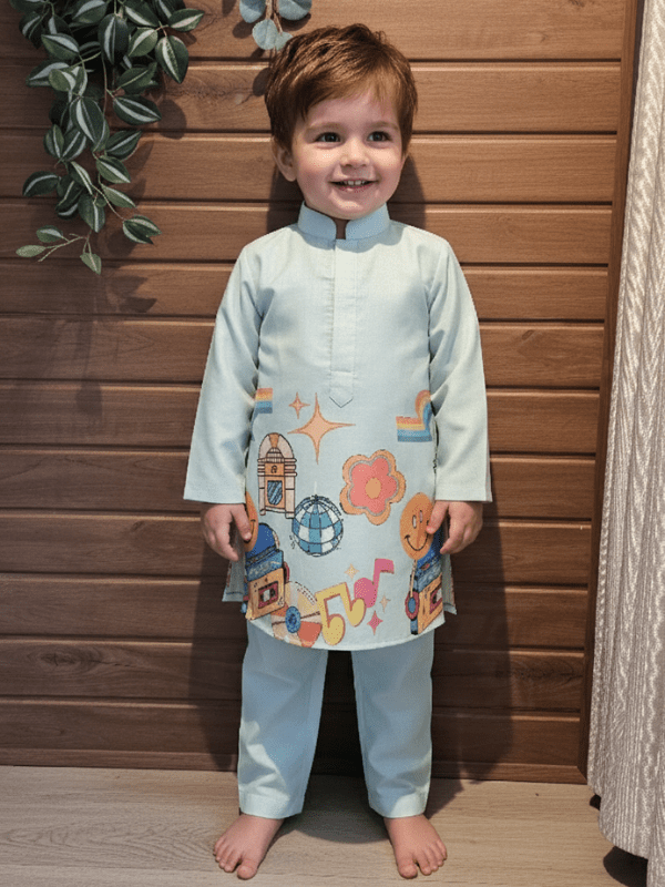 Design Printed Kurta for Boys in traditional elegance with this premium Kuthi and Dothi set, specially designed for kids aged 1 to 2 years.