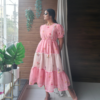 Add a touch of soft elegance to your wardrobe with this Pink Floral Printed Layered Frock Dress for Women. Designed with a charming gingham check pattern and delicate floral prints, this dress creates a fresh and feminine look perfect for everyday style.