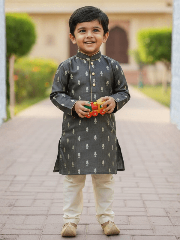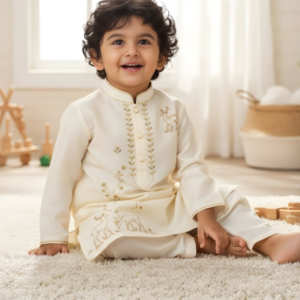 Dress your little one in traditional elegance with this premium Kuthi and Dothi set, specially designed for kids aged 1 to 2 years.
