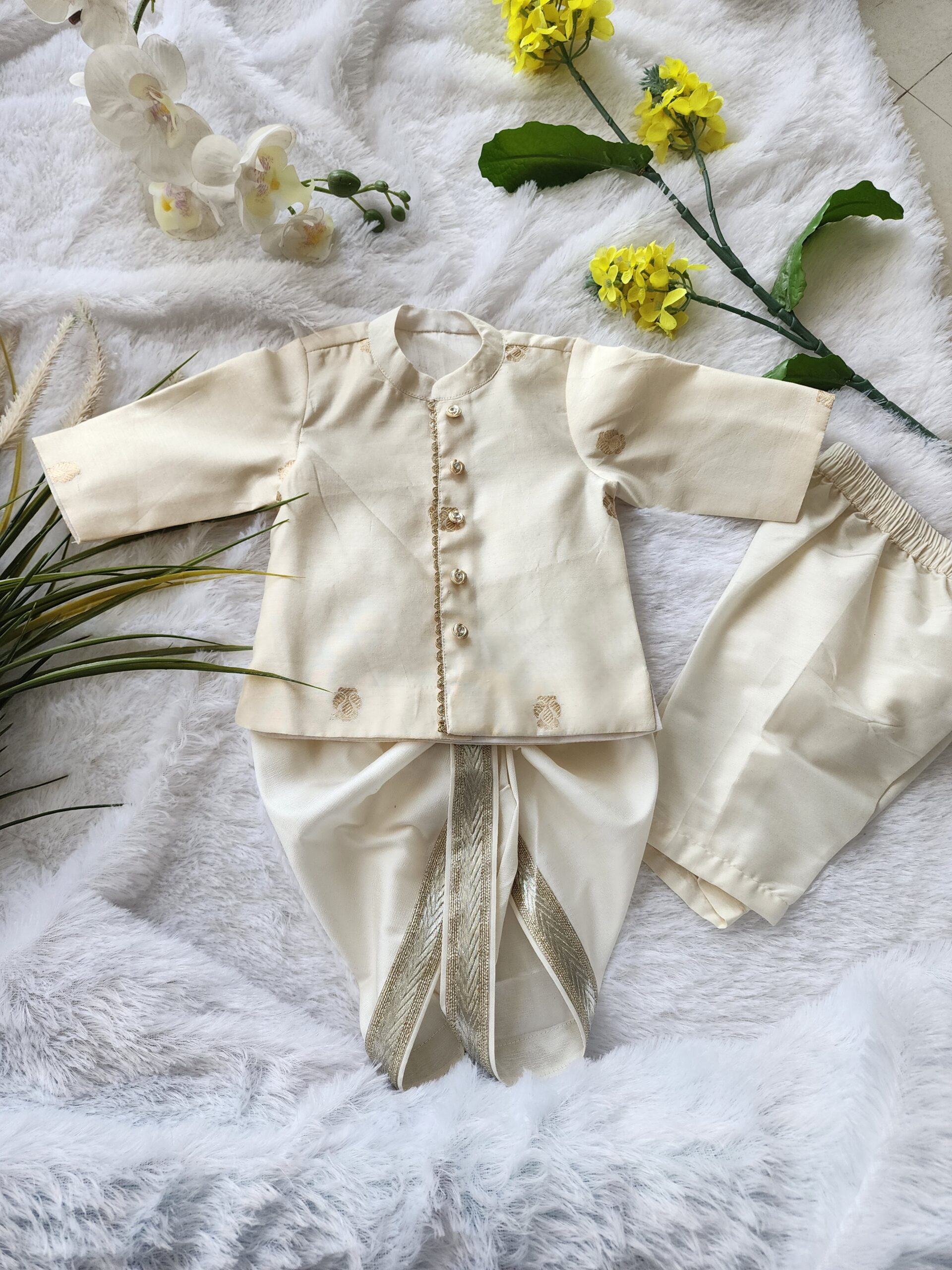 Timeless Indian attire of dhoti and kurta is a must-have in his wardrobe.